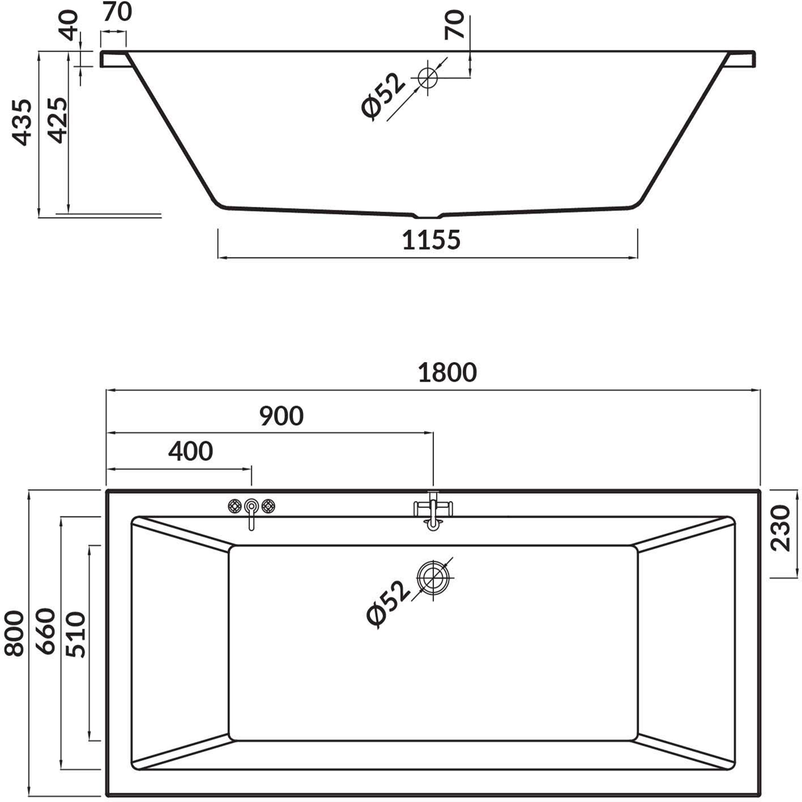 - Elegantní tvar: obdélníkový tvar vany INTRO zajišťuje klasický a nadčasový vzhled, který se dokonale hodí k různým koupelnovým stylům.