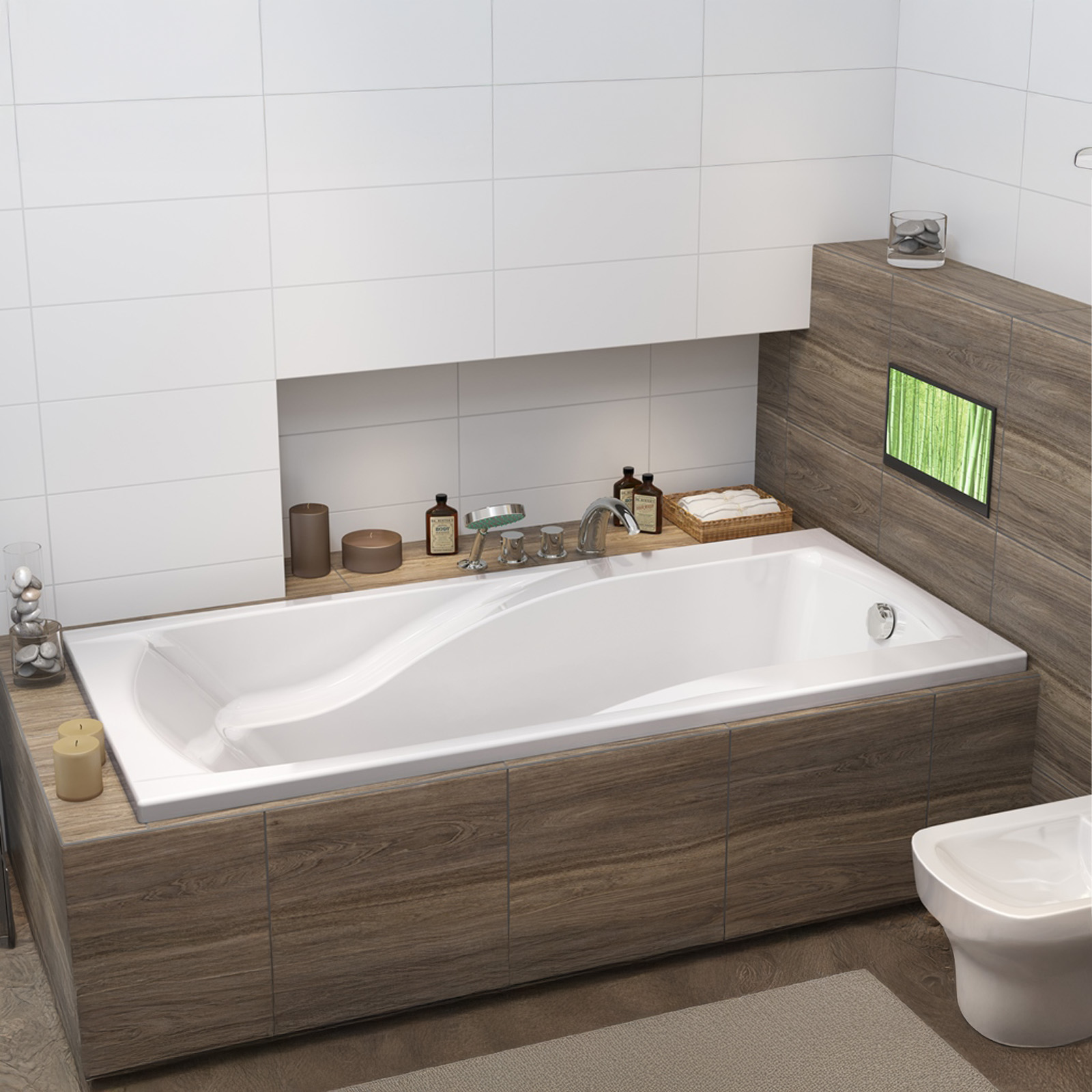 Pamatujte na: sifon, panel, vanovou baterii a zástěnu.
