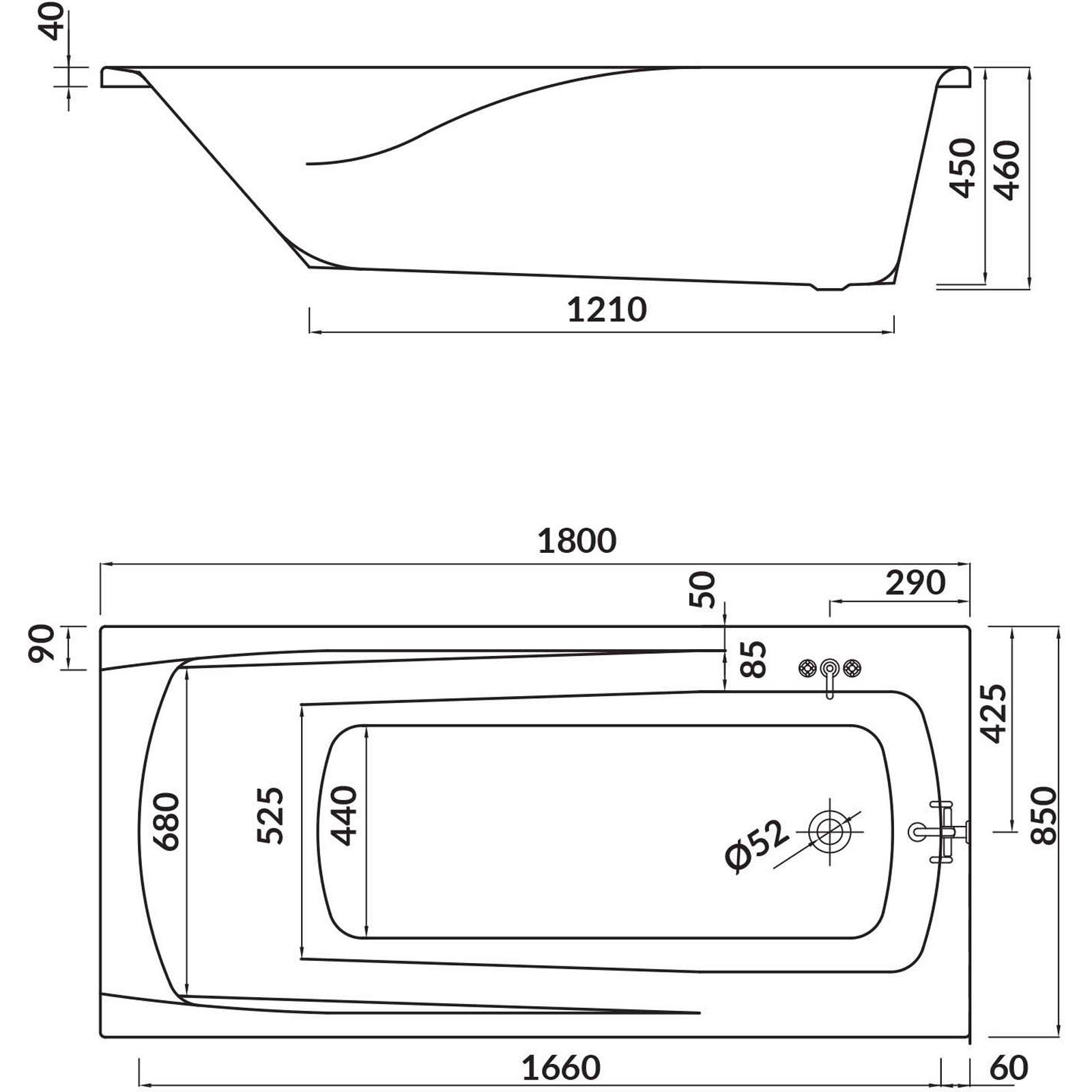 | Umístění odtoku vody z vany: | Boční odtok na kratší straně |