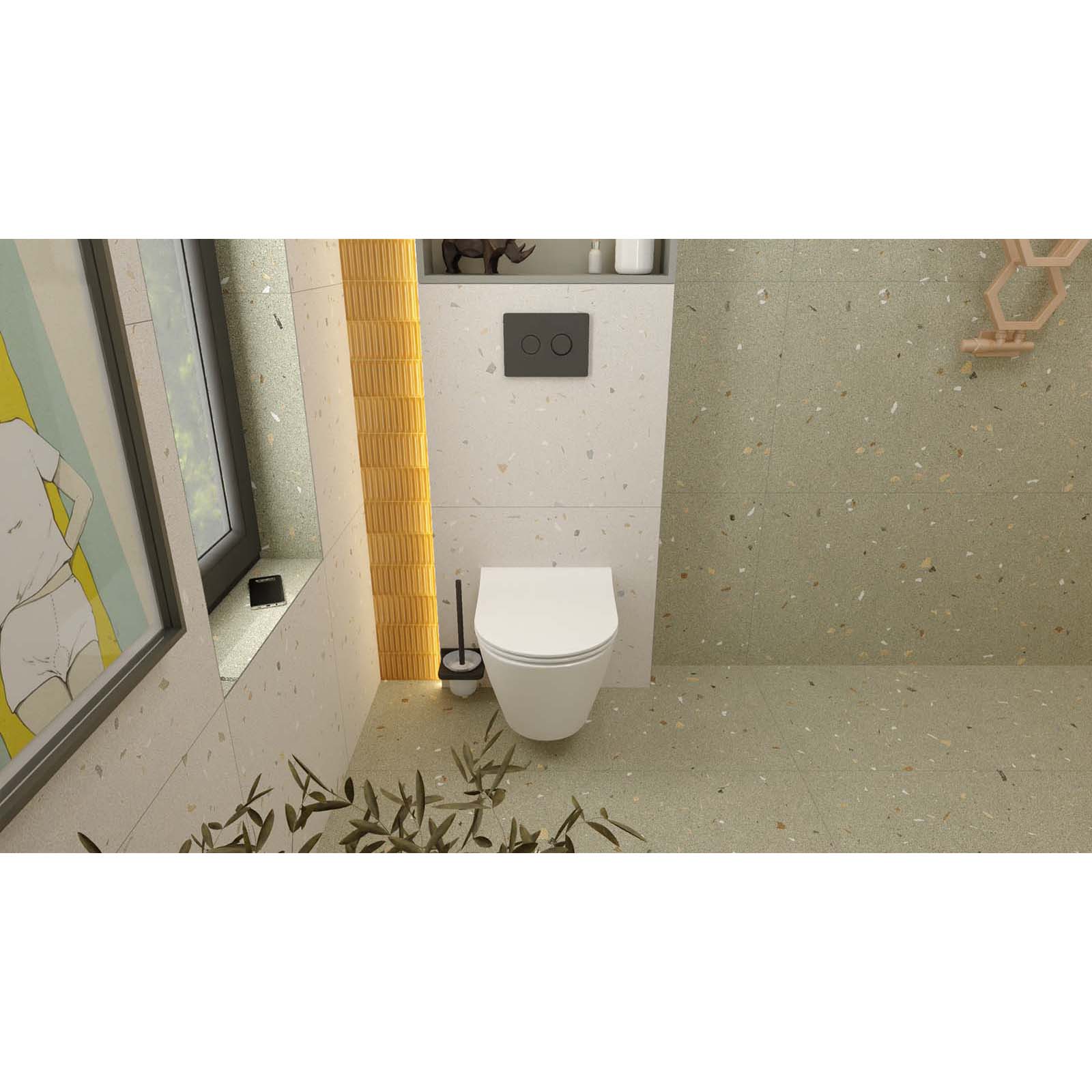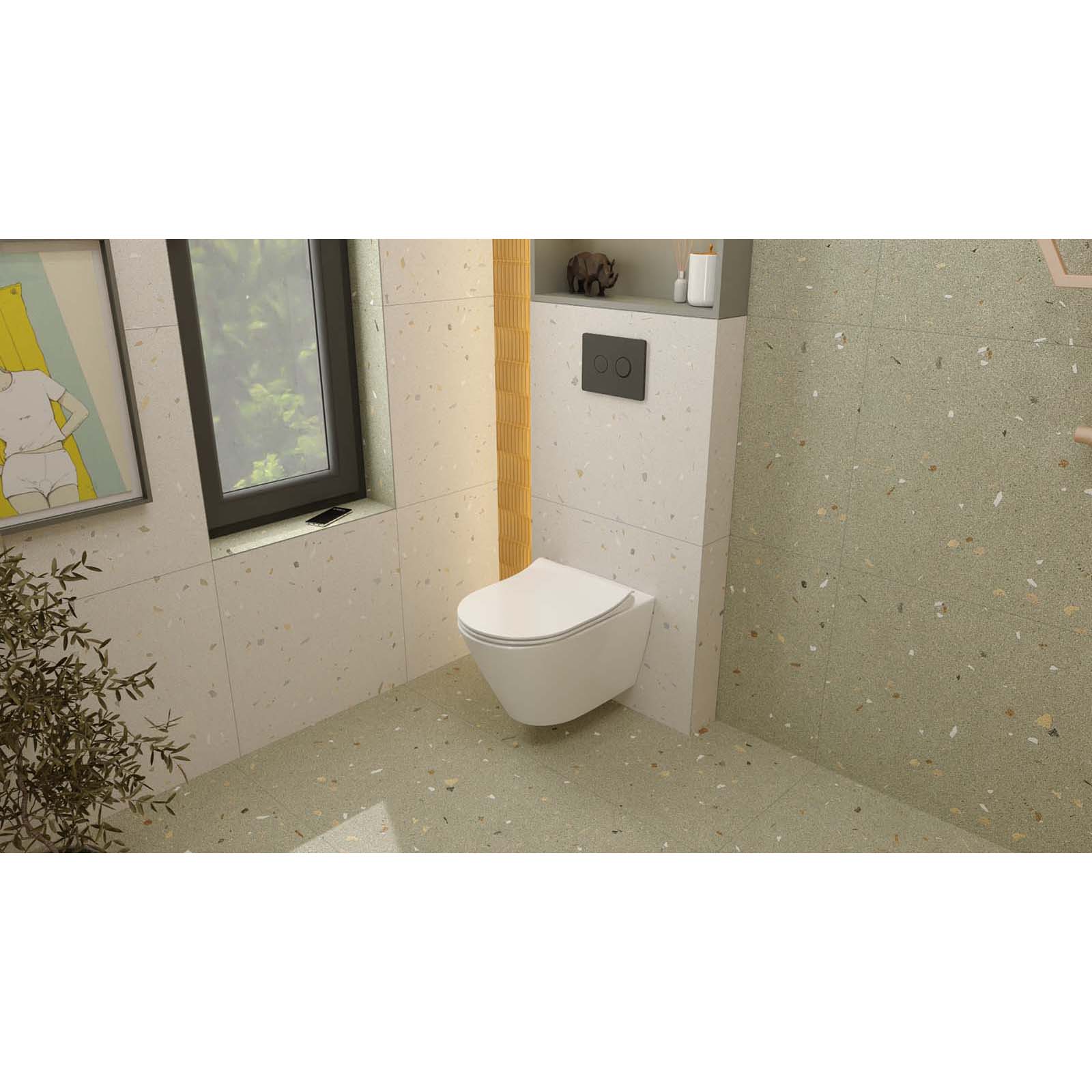- Dispenser FRESH SYSTEM- Rám byl vybaven řešením umožňujícím aplikaci osvěžujících kostek do vnitřku nádrže. Ekonomické splachovací systémy v bezrámových keramikách ztěžují používání tradičních WC visících systémů - chybí klasický okraj kolem mísy. FRESH SYSTEM eliminuje nutnost přidávat osvěžovače na povrch keramiky. Dispenser zabraňuje pohybu kostky uvnitř rámu a umožňuje její pomalé rozpouštění, aby dodával čerstvost spolu s vodou při každém stisknutí splachovacího tlačítka.