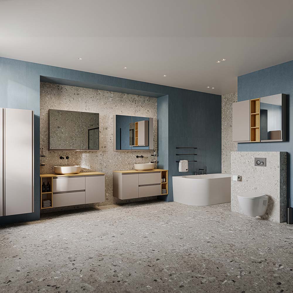 Kolekce MODUO nabízí široký výběr koupelnového nábytku, keramiky, sprchových koutů a elegantních baterií.
