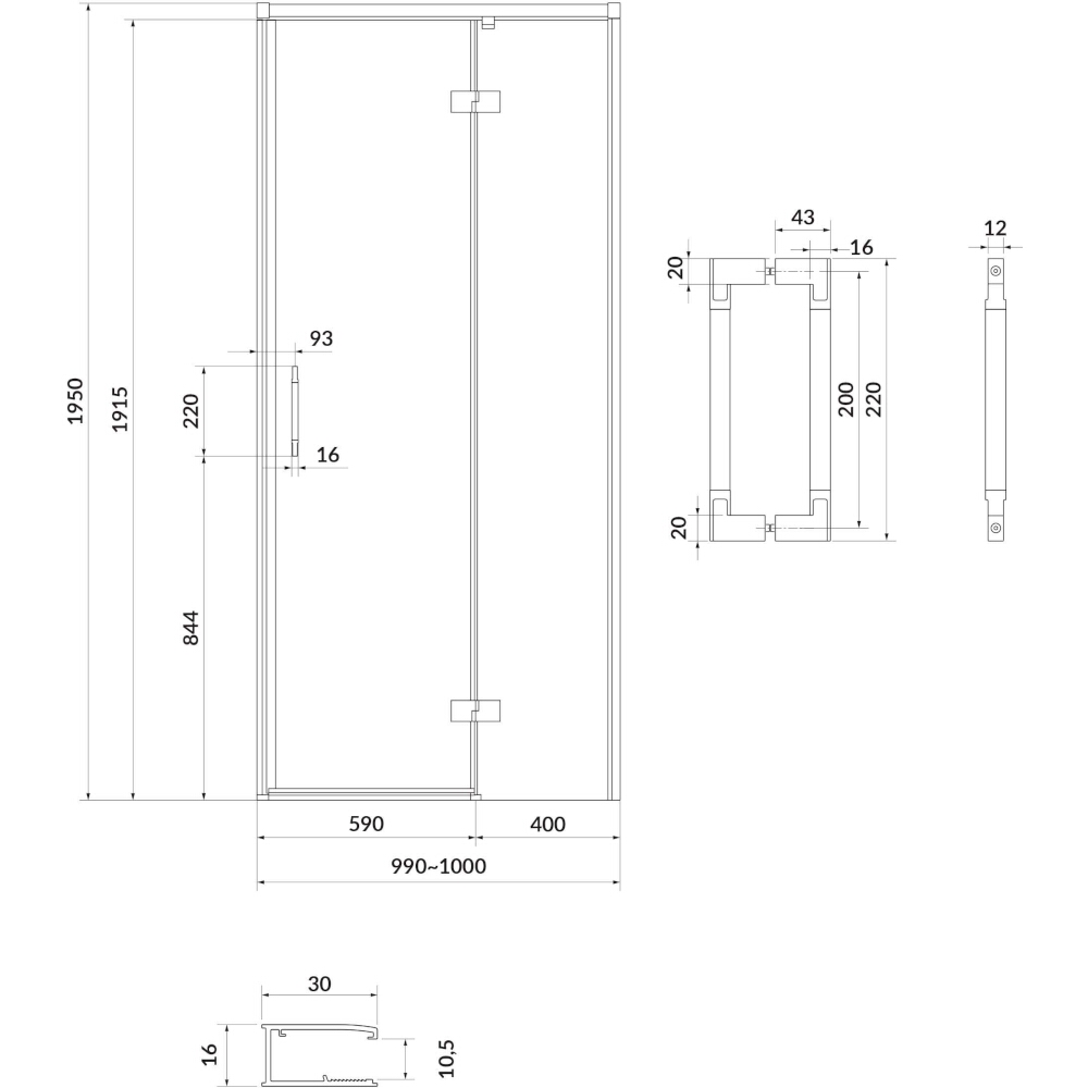 Sprchové dveře LARGA černé 100x195 PR průhledné sklo