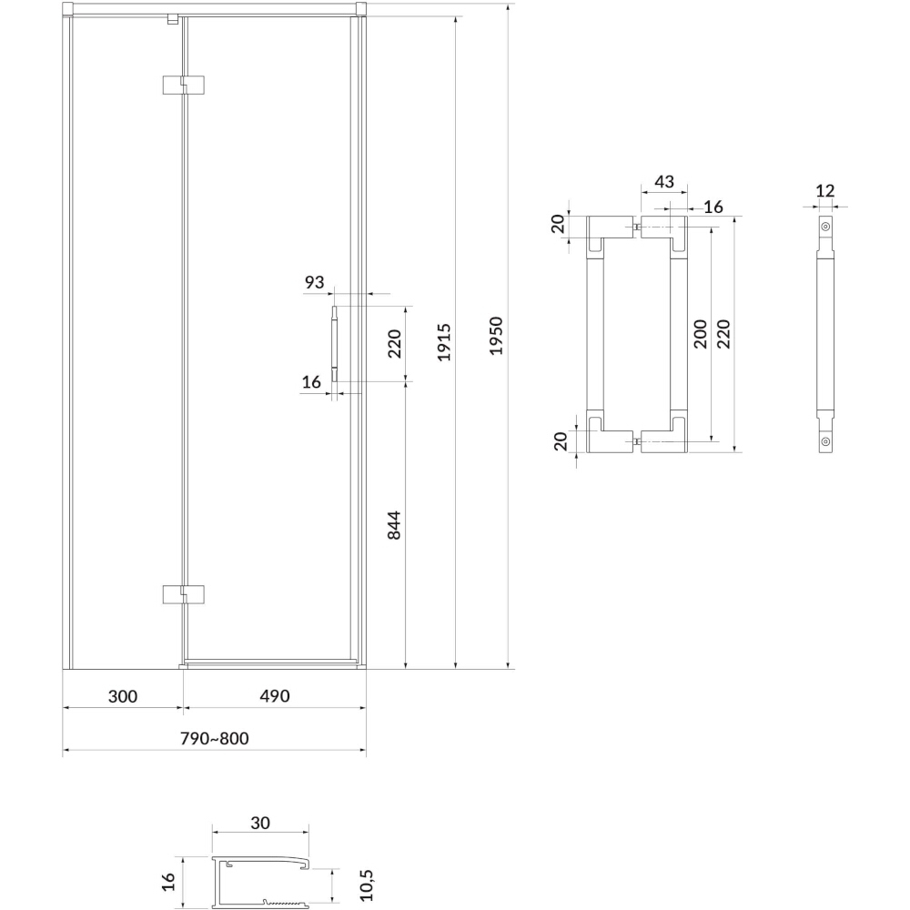 Sprchové dveře LARGA černé 80x195 LEVÉ průhledné sklo