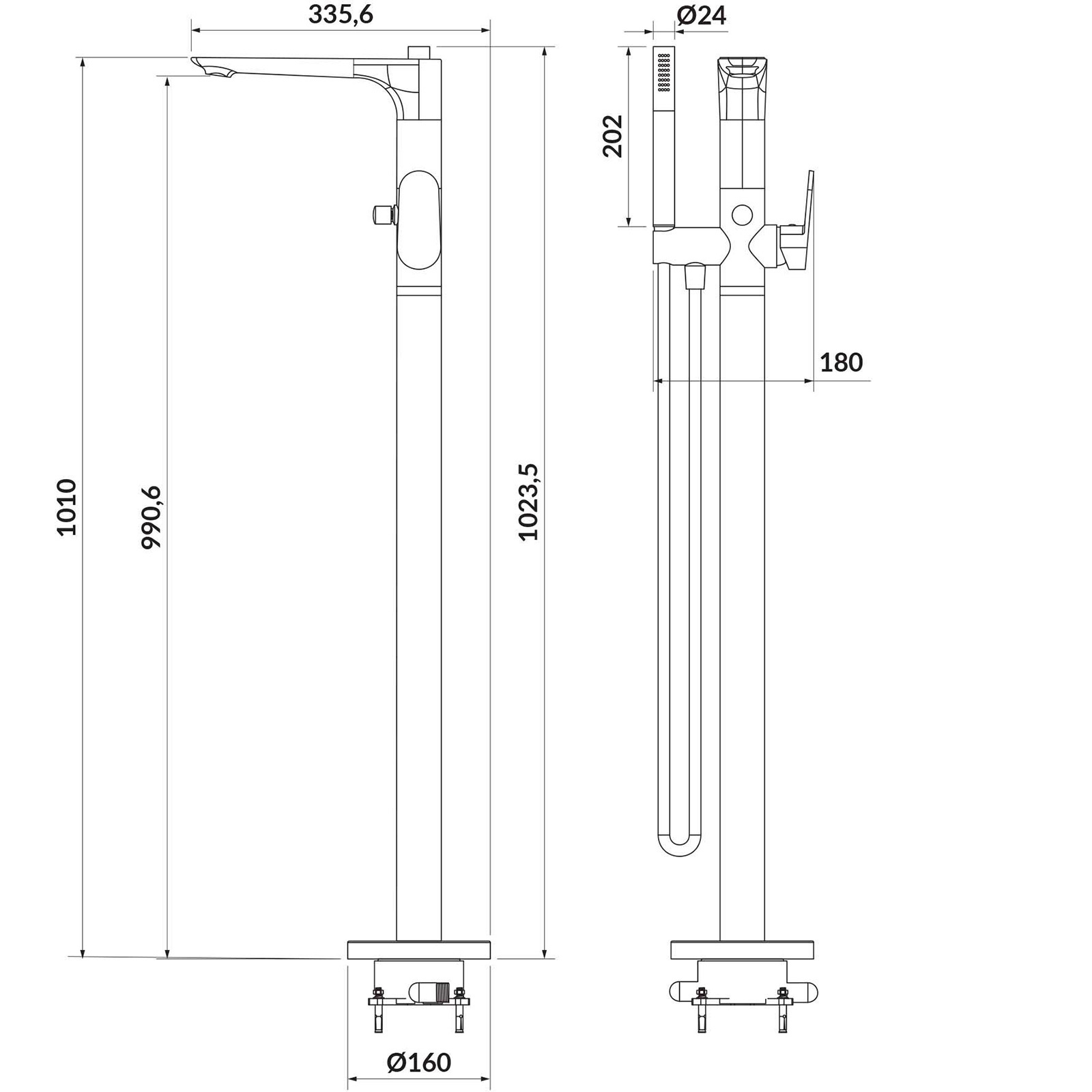 CERSANIT Volně stojící vanová a sprchová baterie CREA černá S951-308