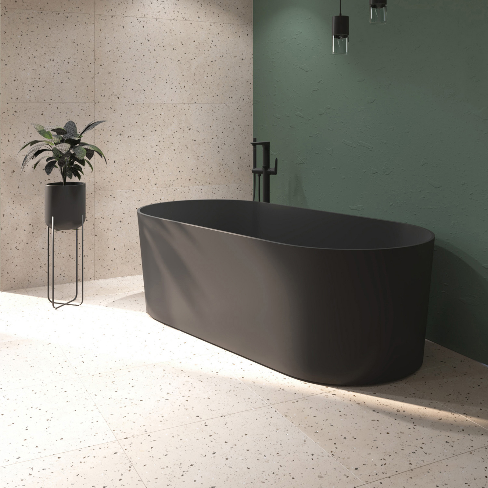 Volně stojící vanová a sprchová baterie CREA černáznačky Cersanit.