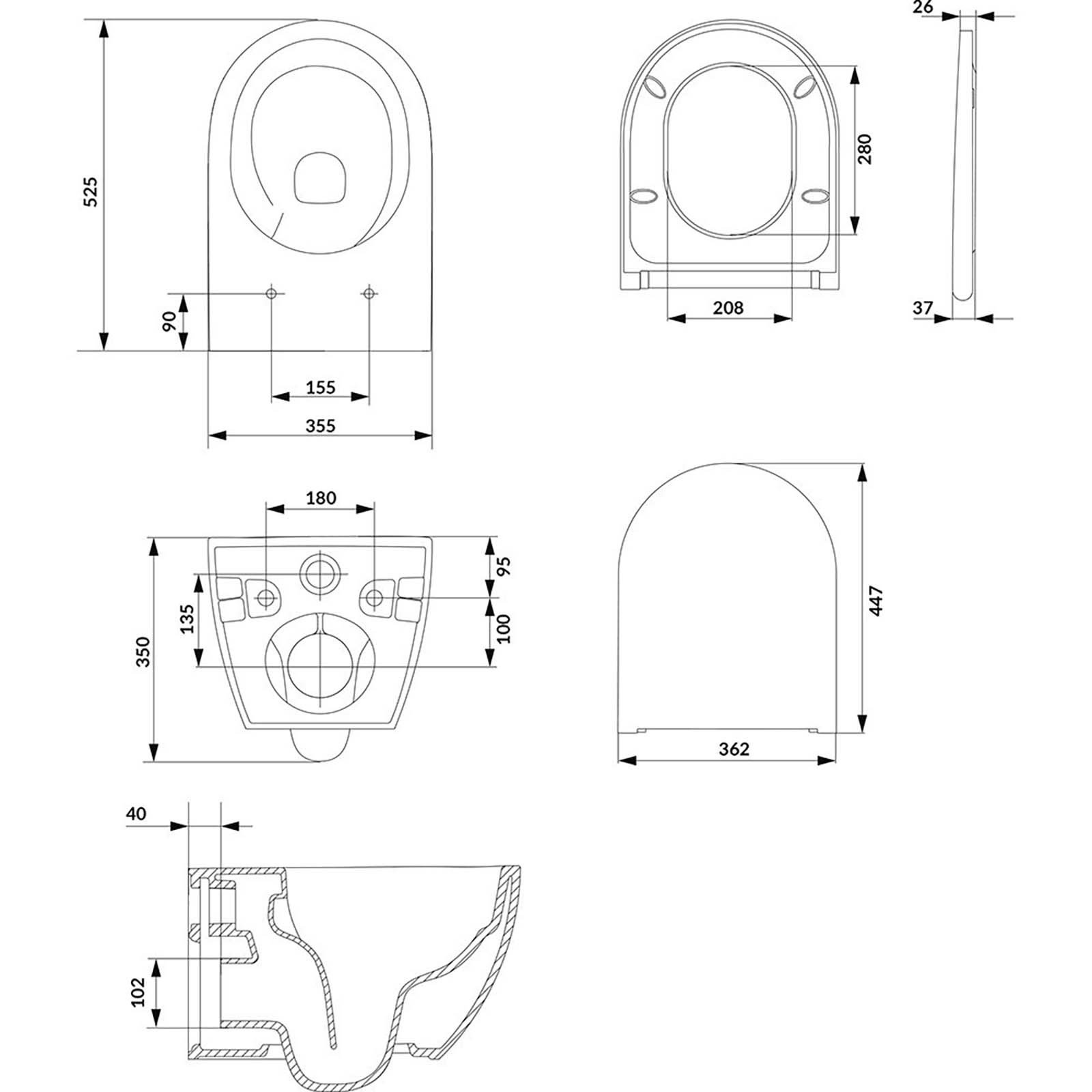 Závěsná mísa bez okraje s technologií vířivého splachování, 2/4l splachování, skrytá montáž, lepená mísa, sedátko s měkkým zavíráním, s funkcí snadného uvolnění.