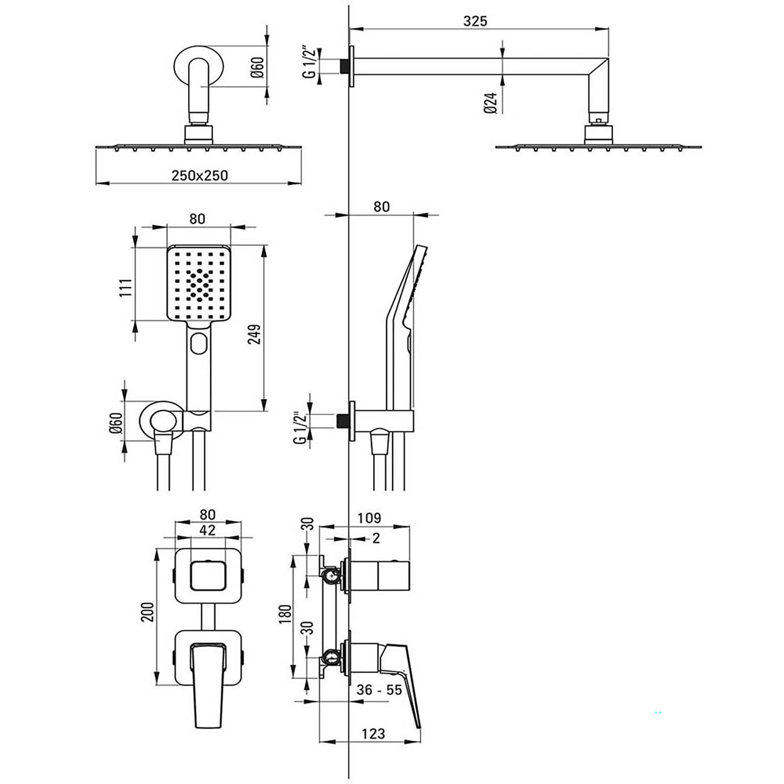 skrytá sprchová sada Skrytá sprchová sada v matné černé barvě je ztělesněním moderního designu. Skládá se ze čtvercové sprchové hlavice, sprchové hlavice s šikmým připojením a hadice, stejně jako z zapuštěného kohoutku. Vyrobena z vysoce kvalitních materiálů, sada je odolná a odolná vůči korozi. Matný povrch nejen dodává eleganci, ale je také snadno čistitelný. Ergonomická páka kohoutku vám umožní přesně nastavit teplotu a průtok vody. Minimalistický design skrývá montážní prvky, což koupelně dodává moderní a upravený vzhled.