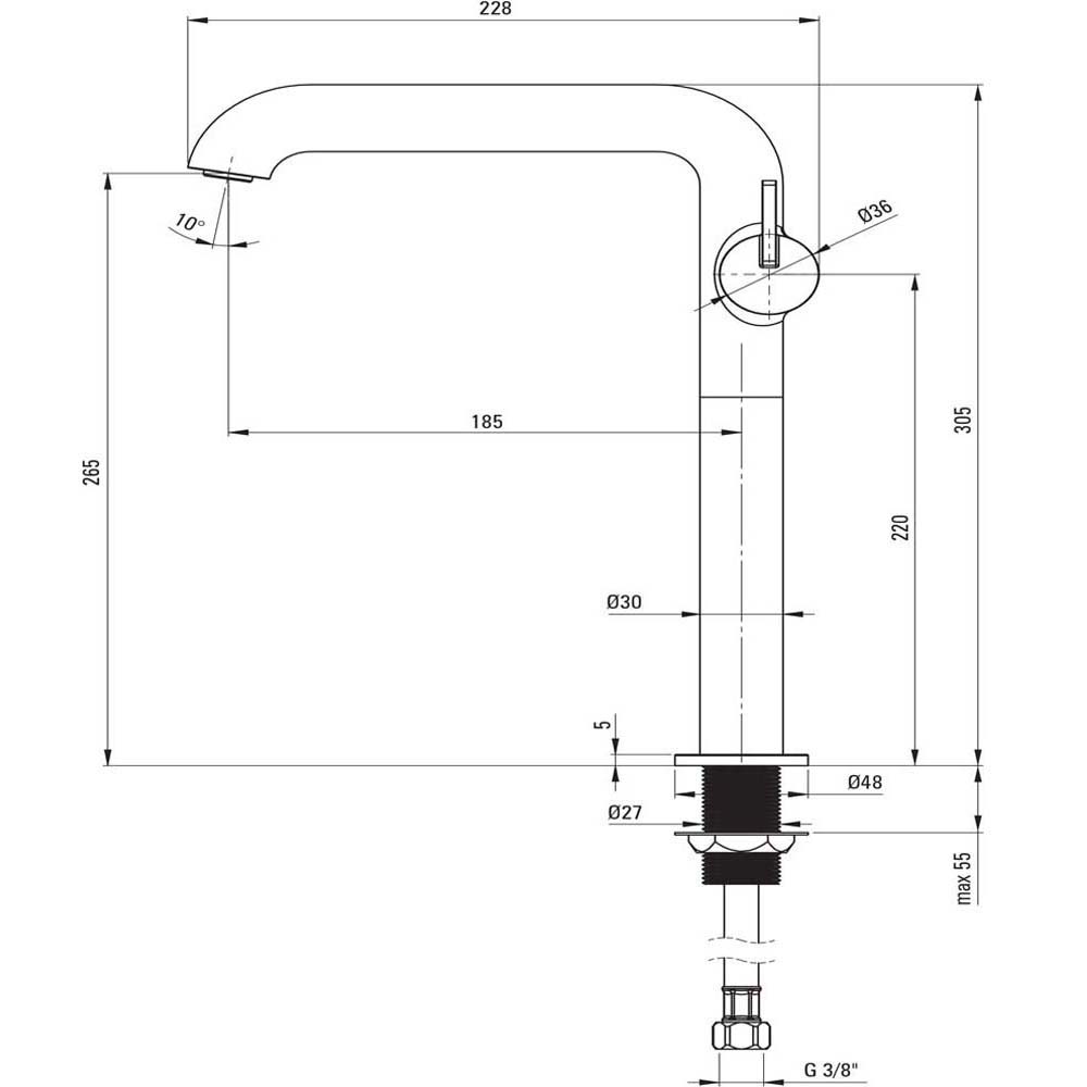 | Dosah výtoku: | 185 mm |