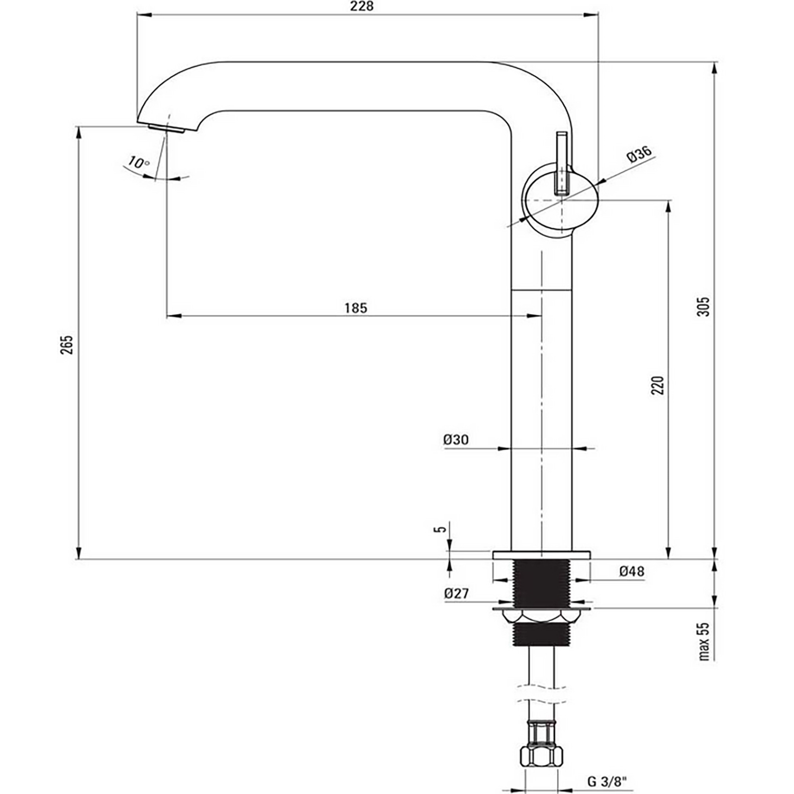 | Dosah výtoku: | 185 mm |