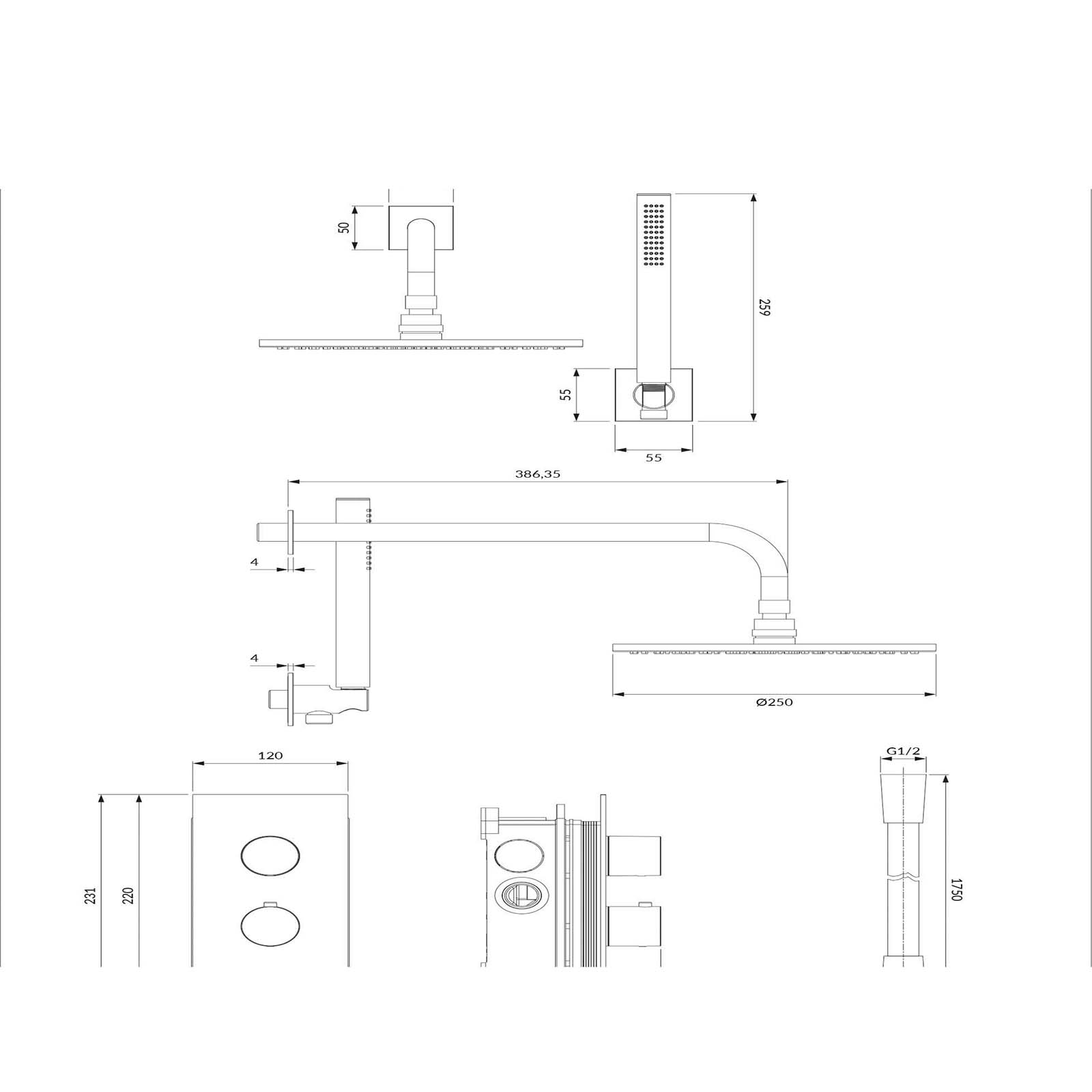 Termostatický sprchový systém CONTOUR zapuštěná montáž