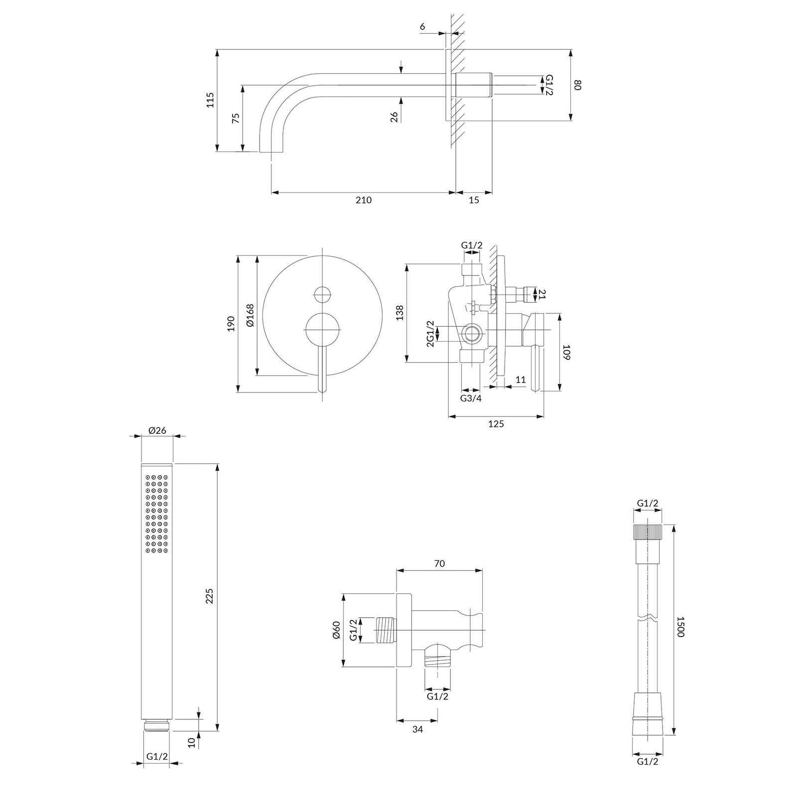 - sprchová hadice s jednou funkcí v ocelovém krytu, délka 150 cm