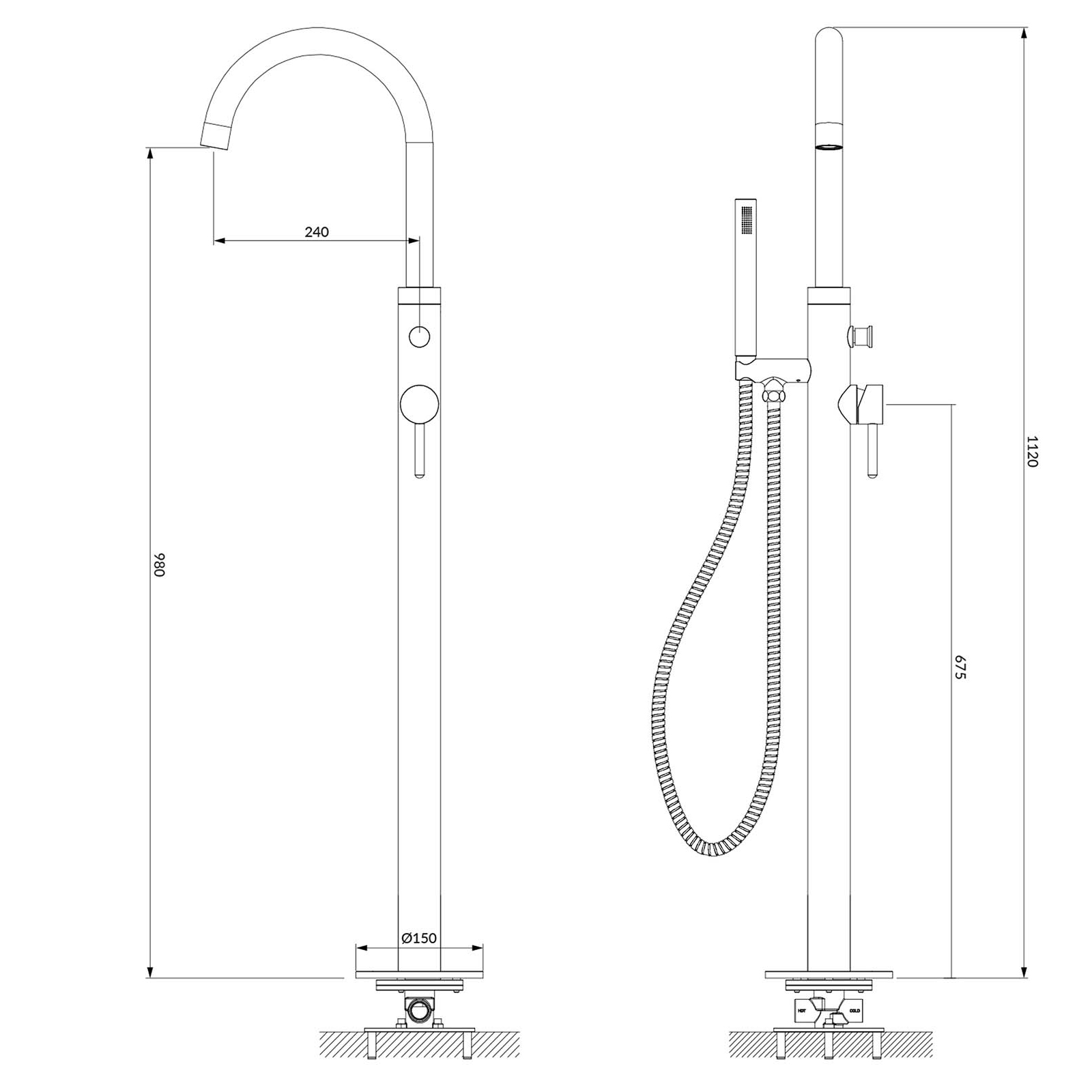 - Celková výška kohoutku: 112 cm