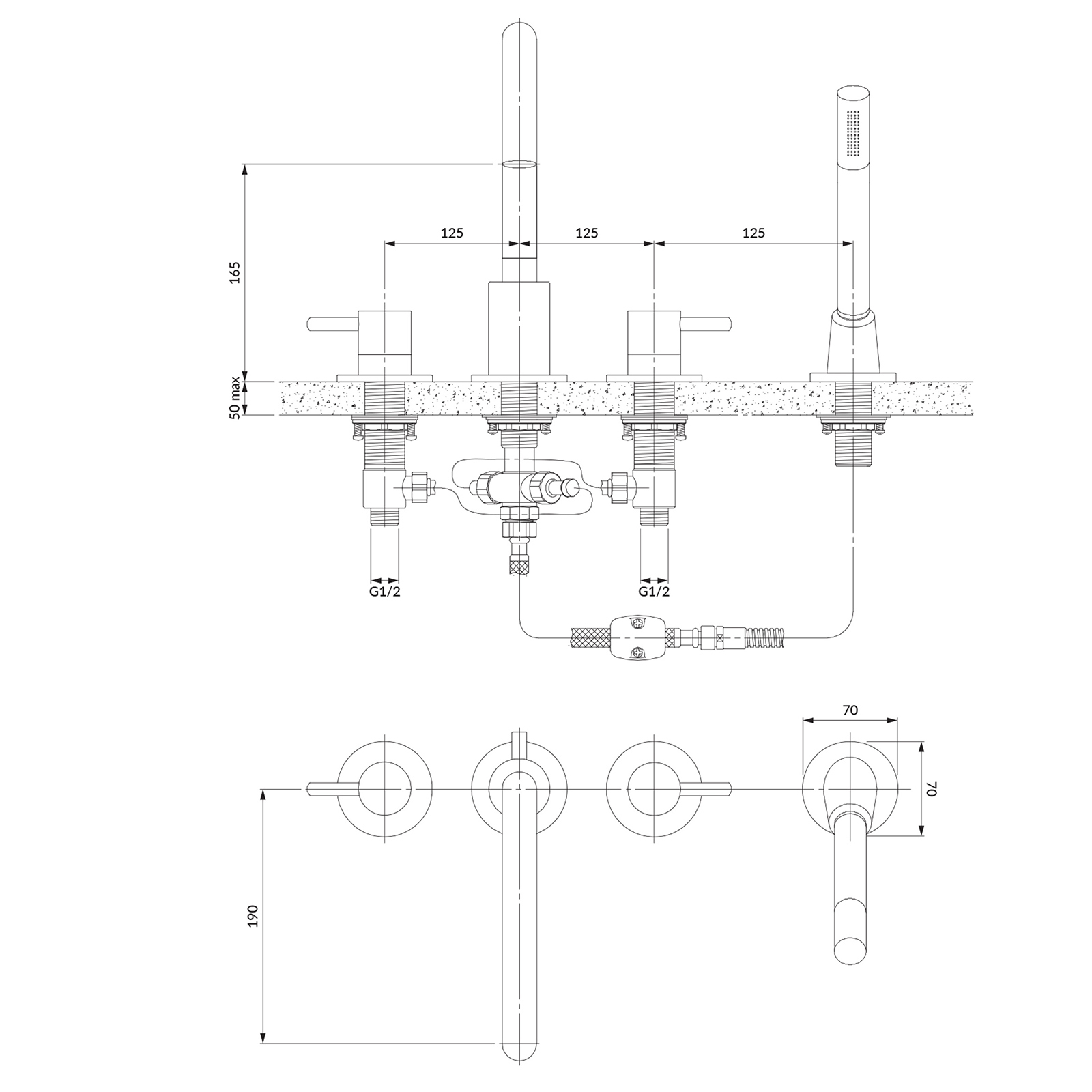 Kohoutek do vany Y černá polomatná s 4 otvory.