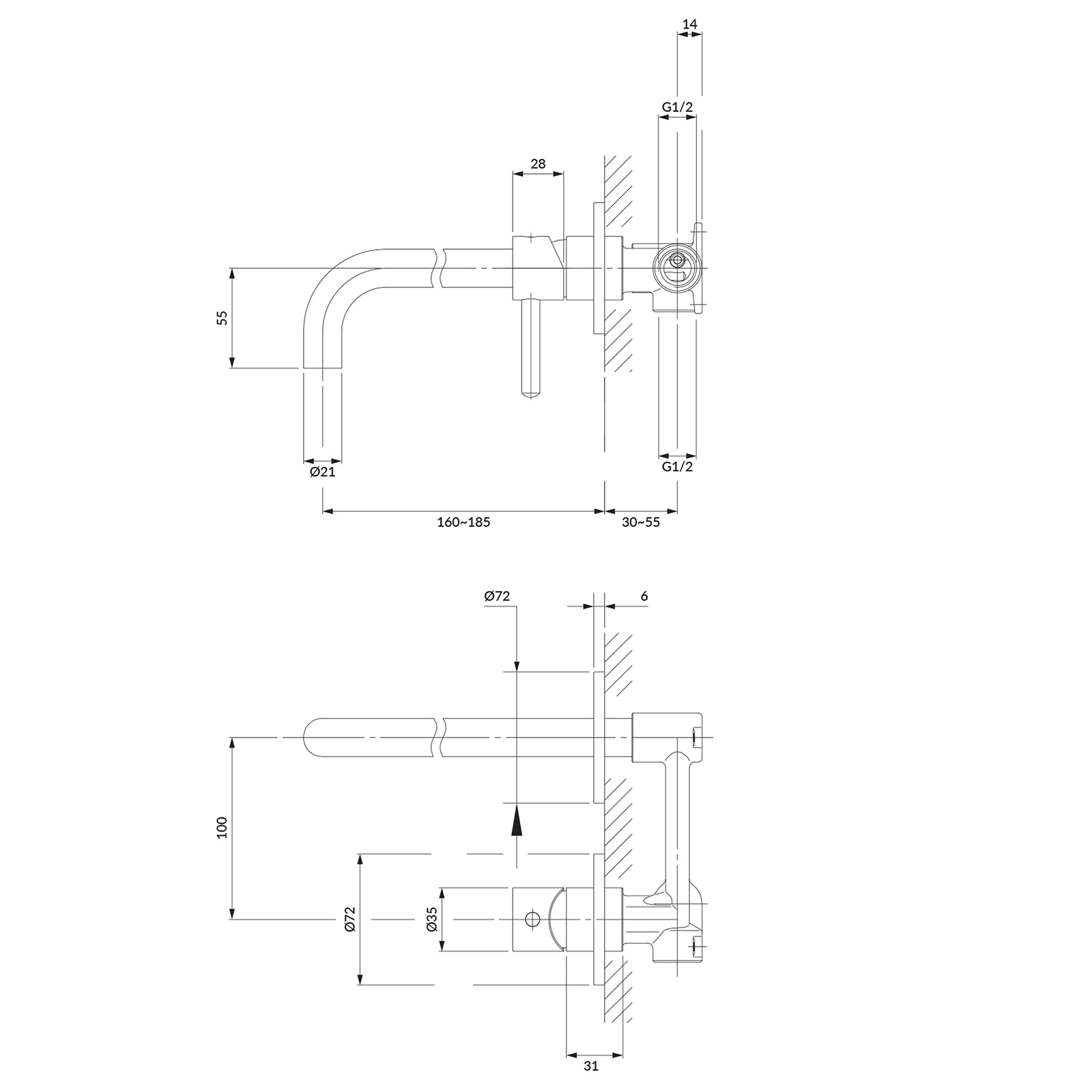 | Dosah výtoku: | 185 mm |
