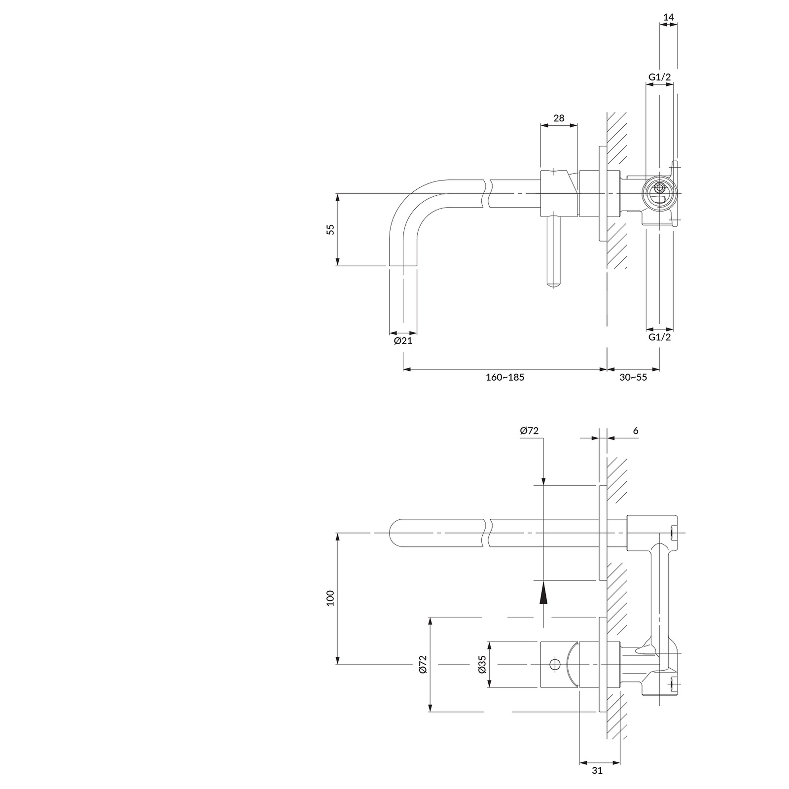 | Dosah výtoku: | 185 mm |