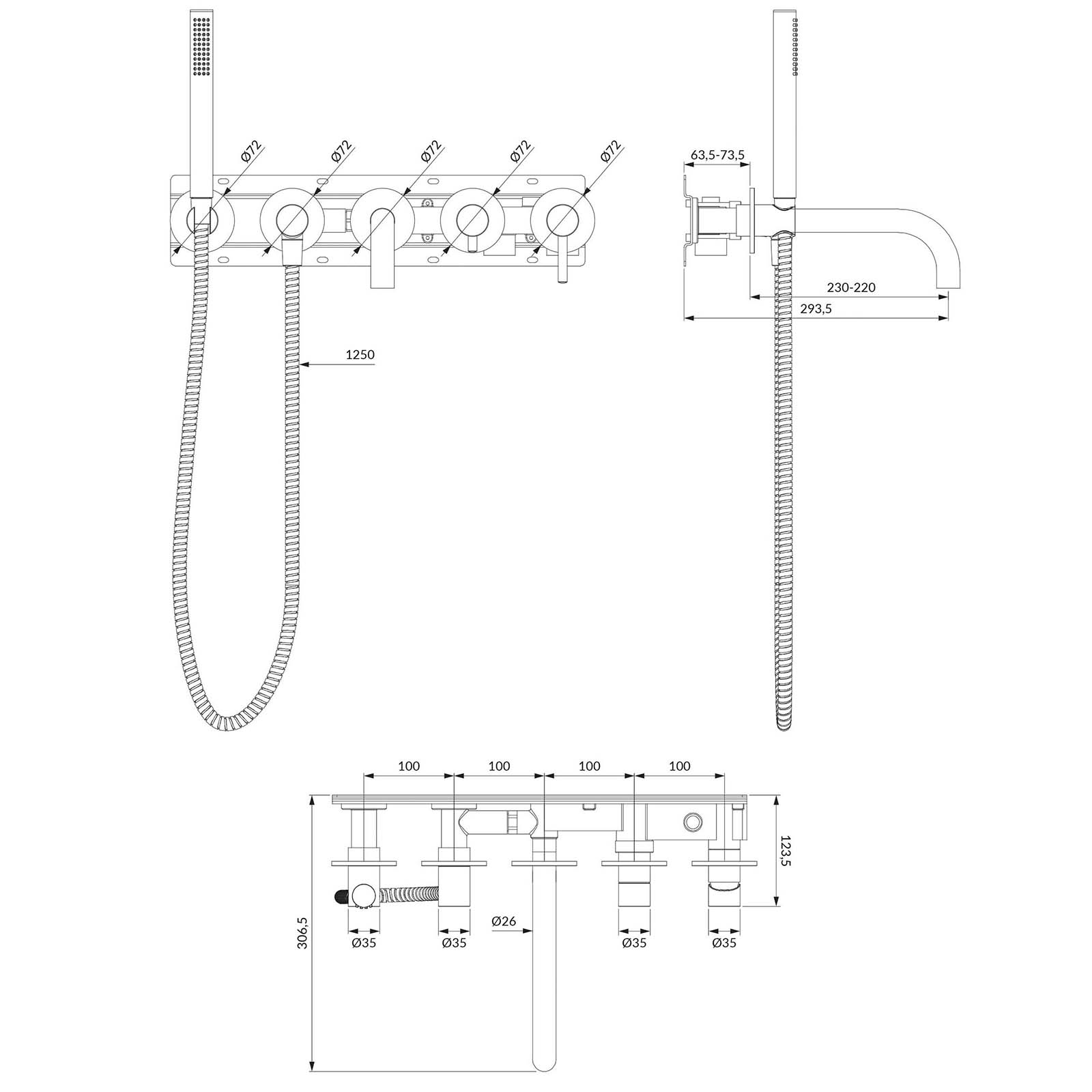 - výtoku od povrchu dlaždic: 22–23 cm