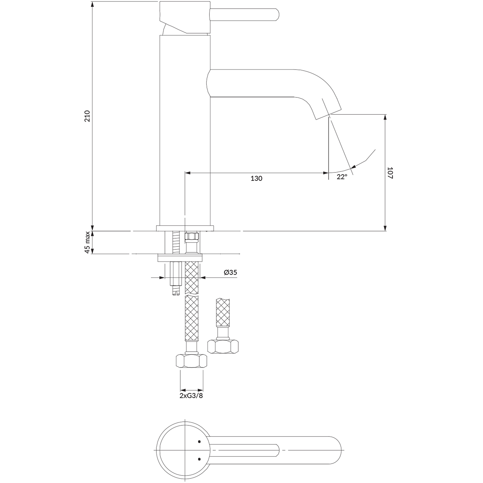 - Celková výška kohoutku: 21 cm