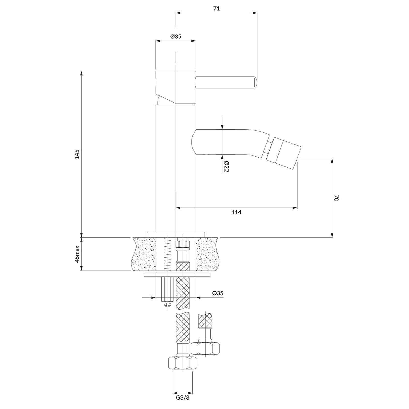 - Celková výška kohoutku: 14,5 cm