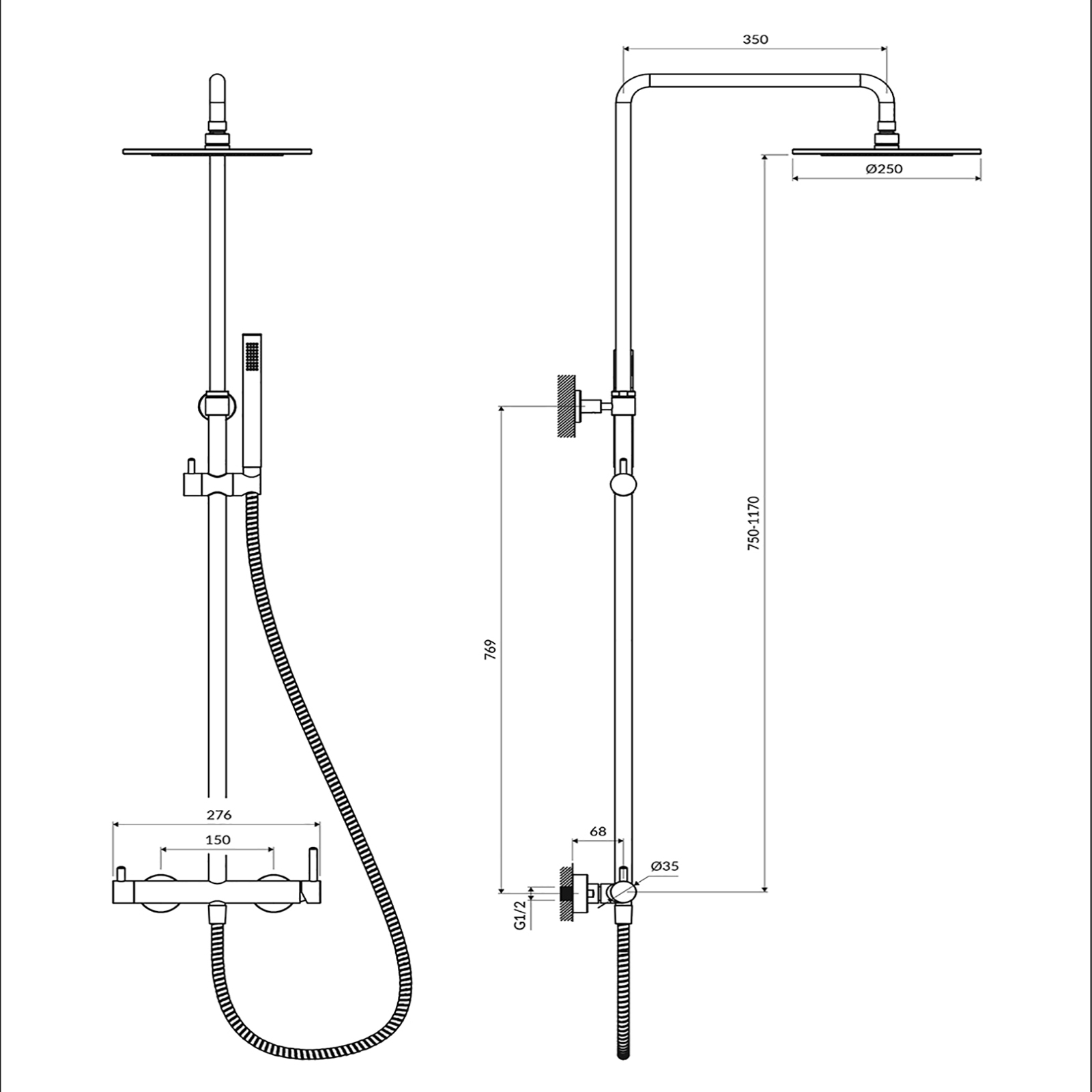 - mosazná sprcha, ø 25 cm, dosah od zdi: 42 cm