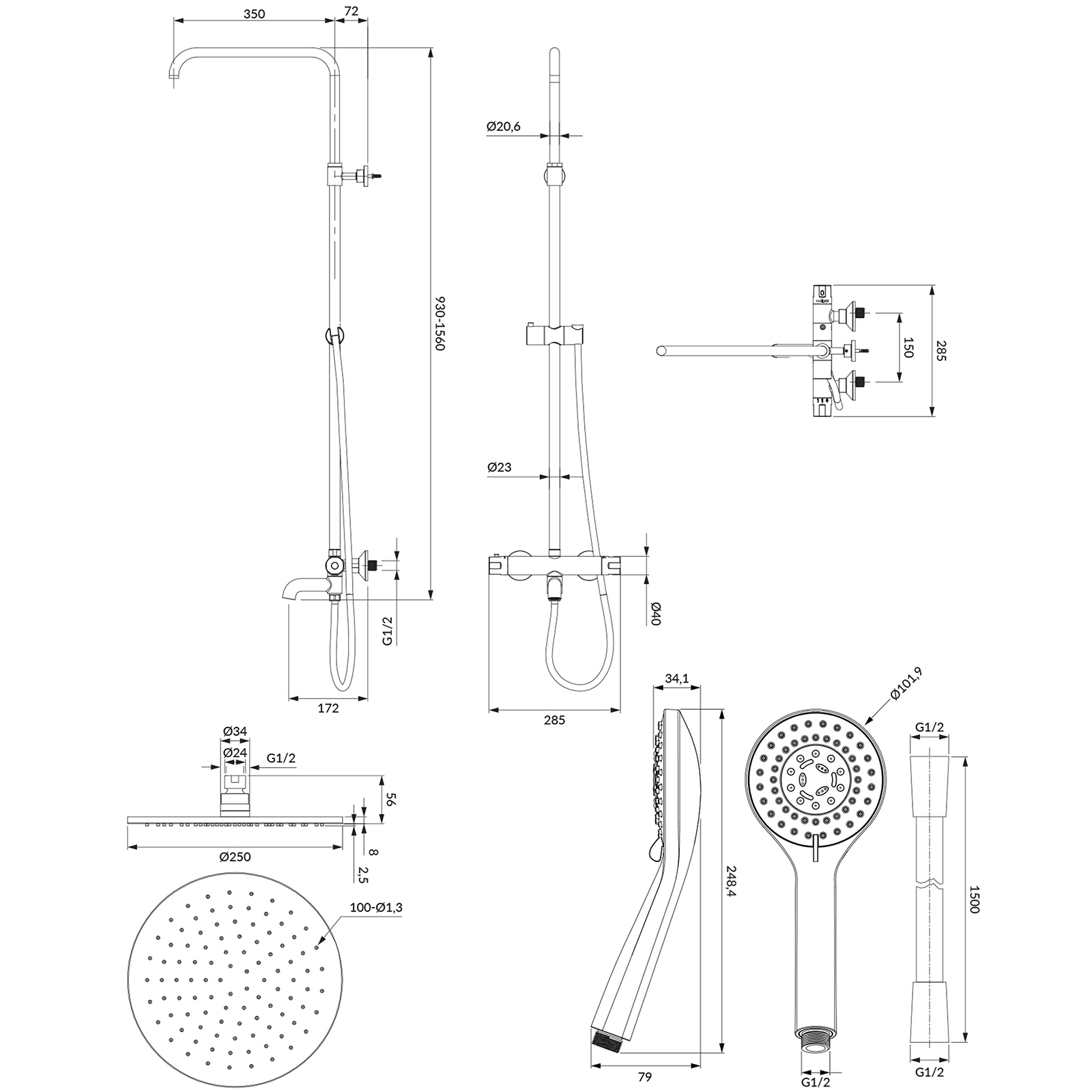 - mosazná sprcha (WG125BL), velikost: ø25 cm, dosah od zdi: 42 cm