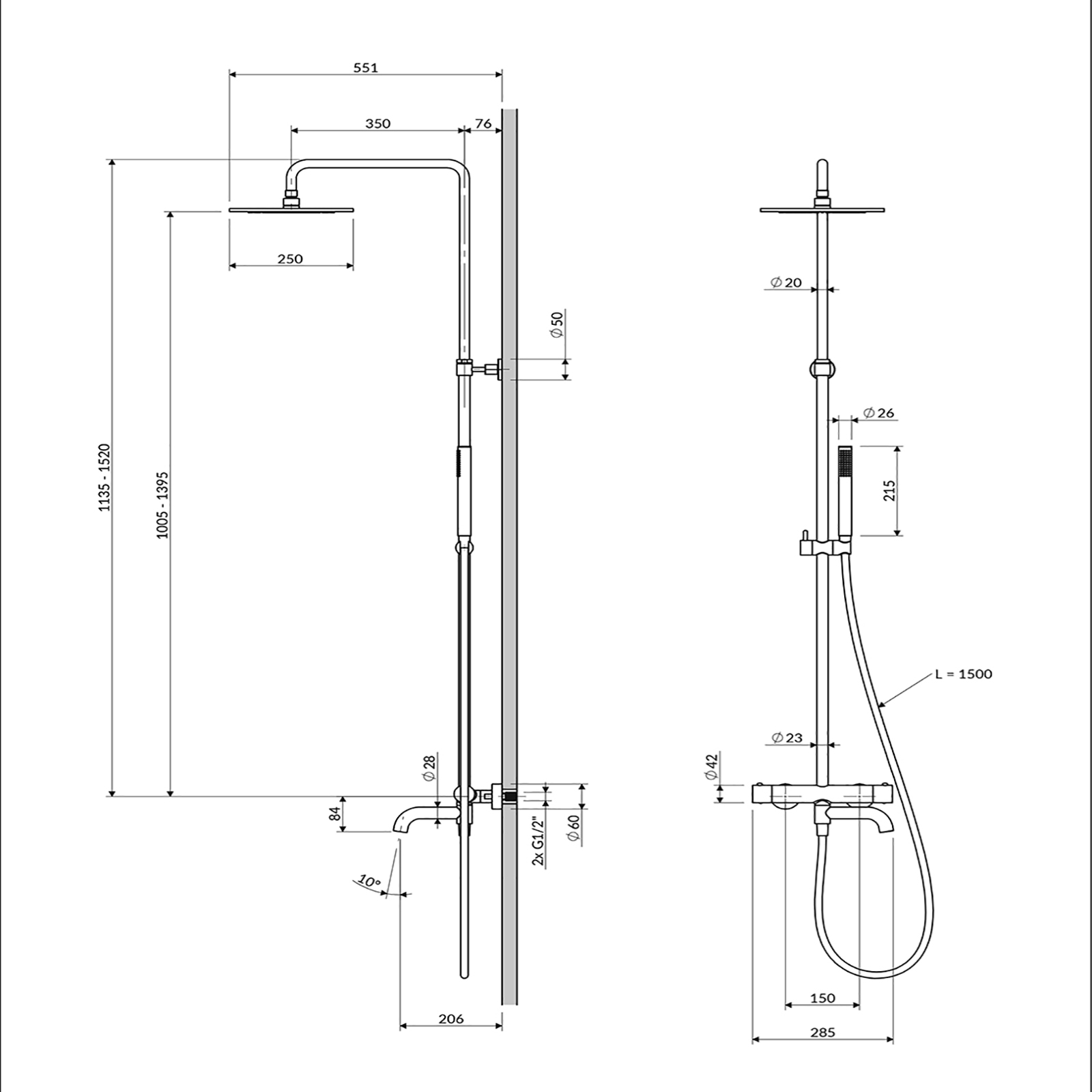 - mosazná sprcha, velikost: ø25 cm, dosah od zdi: 42 cm rozsah