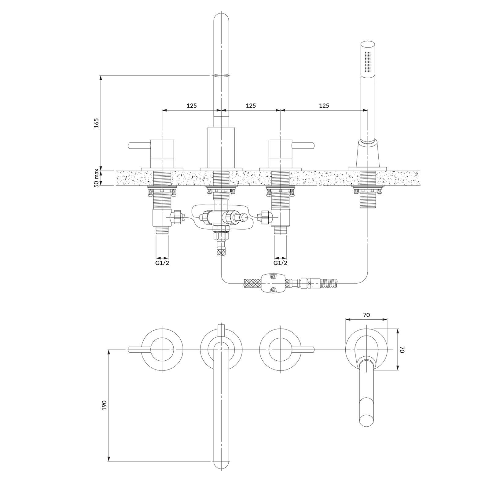 - mosazná sprchová hadice s jednou funkcí, délka: 180 cm