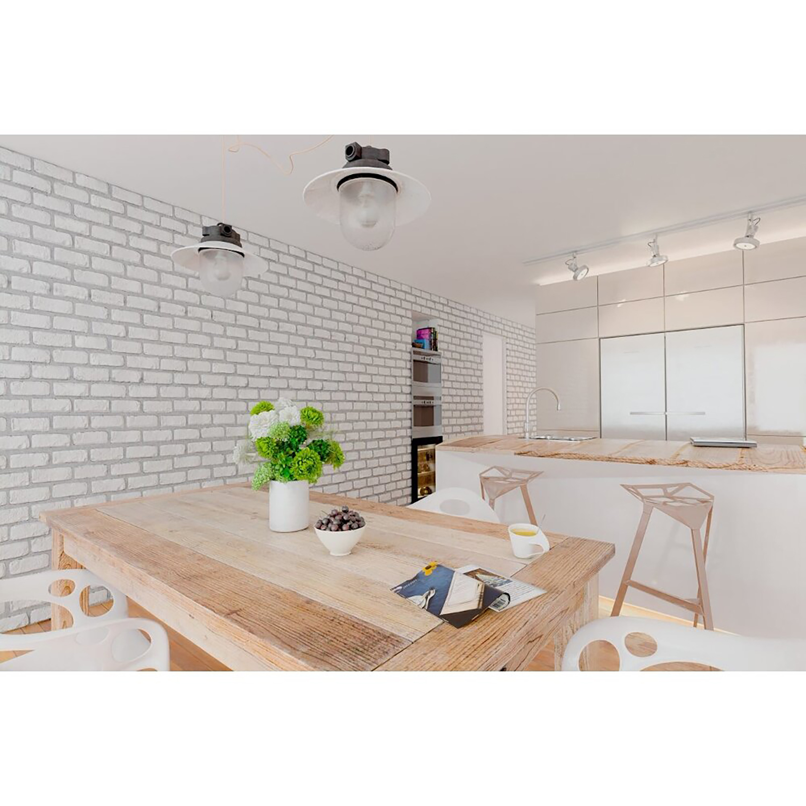 Loft je cihla s zaoblenými hranami, dostupná v barvě bělené cihly a klasické červené s bílým a šedým zbarvením. Dlaždice příjemně kontrastují s monochromatickými povrchy a moderním lesklým nábytkem, čirým sklem a kovovými detaily – typickými pro modernistický styl.